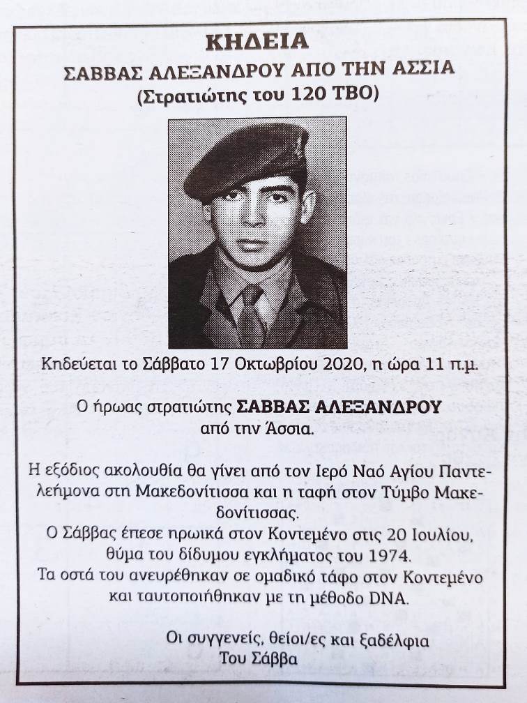 Κηδεία Σάββα Αλεξάνδρου 17-10-2020