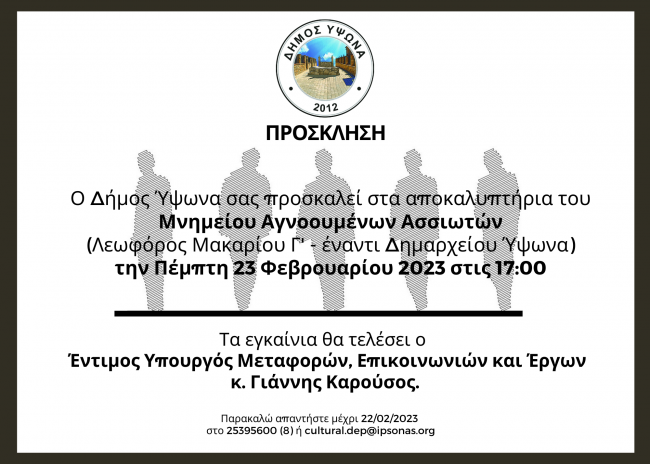 Εγκαίνια Μνημείου Ασσιωτών Αγνοουμένων στο Δήμο Ύψωνα